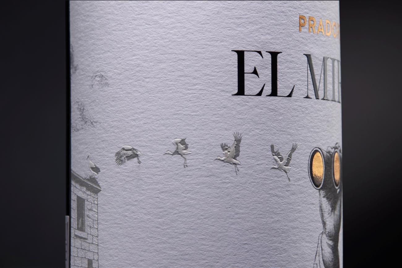 EL MIRÓN, proyecto vinícola de Pradorey, parte de un lugar real dentro de su finca: una torreta desde la que observar el paisaje y entender el territorio. Esa idea de mirar, detenerse y descubrir fue el punto de partida para desarrollar una etiqueta donde cada detalle busca generar profundidad y significado.