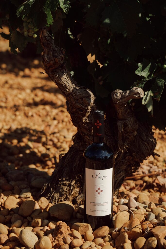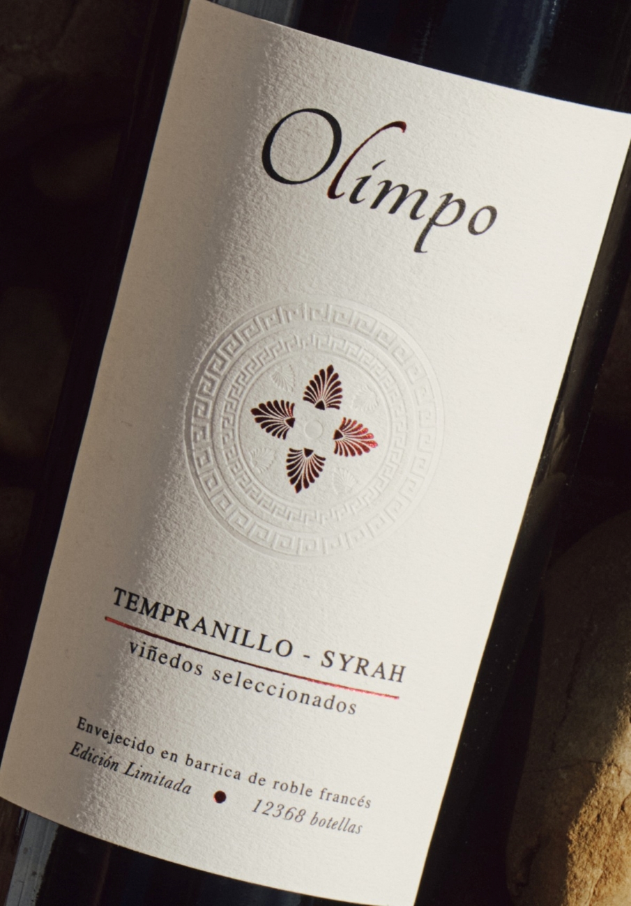 Una etiqueta a la altura de la edición limitada de este elegante Olimpo procedente de viñas viejas, elaborado al 50% con Tempranillo y con Syrah y criado en barricas nuevas de roble francés.